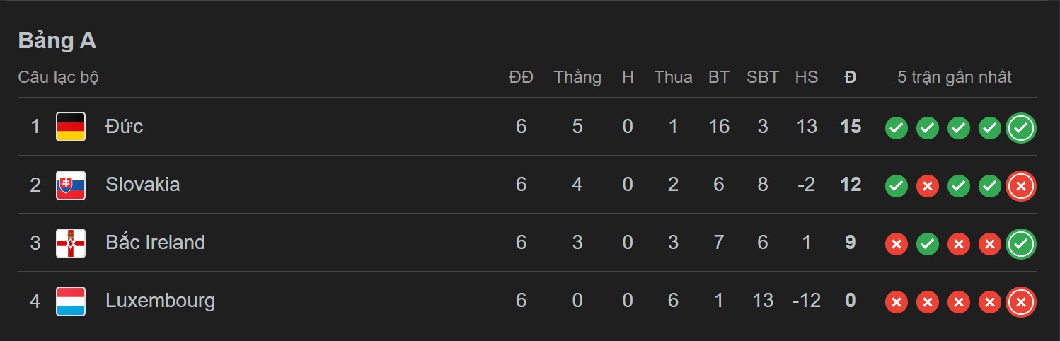 (Bảng A vòng loại World Cup 2026 khu vực châu Âu) Trận chung kết của bảng đấu chứng kiến ĐT Đức chơi tấn công bùng nổ để kết liễu trận đấu ngay trong hiệp 1.