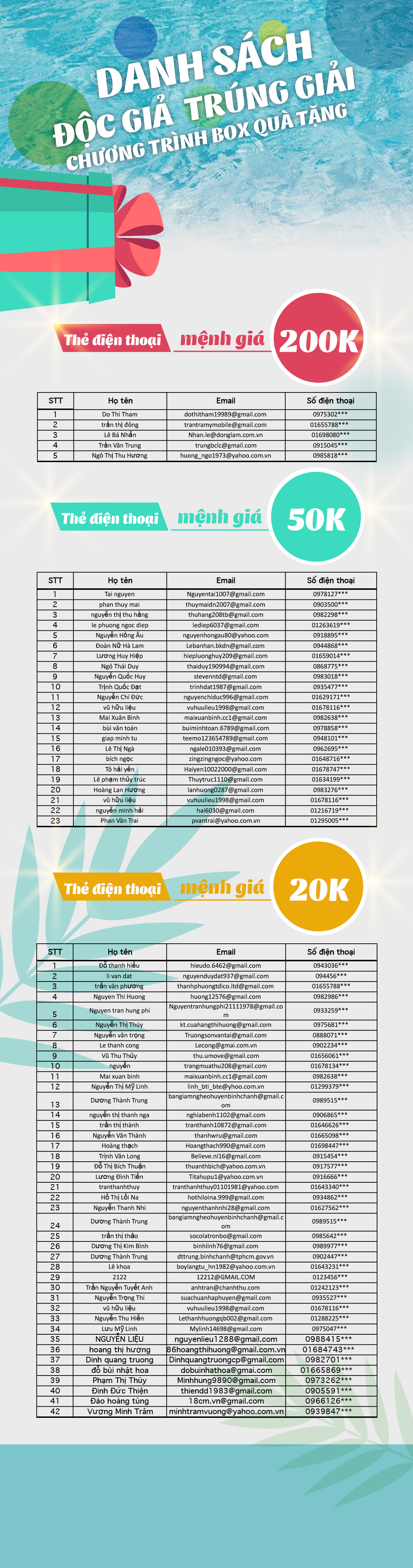 Danh sách trúng thưởng chương trình box quà tặng từ ngày 08-14 tháng 8
