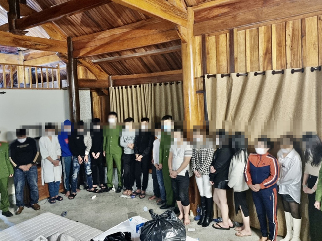 Tại thời điểm kiểm tra, lực lượng công an phát hiện 16 nam, nữ thanh niên đang tham gia bữa tiệc thác loạn ở chất cấm.
