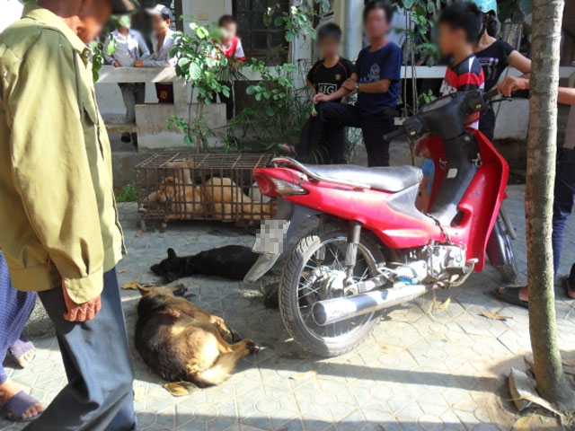 Một lúc sau, lực lượng chức năng phát hiện một thanh niên đi xe máy mang biển số 47N7- 7378 đang bỏ chó chết vào bao tải nên ập đến khống chế.
