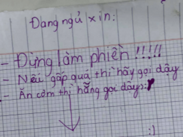 Trình bày xong nguyện vọng, cậu bé đã dán trước cửa phòng, coi đó là lời "nhắc nhở nhẹ" phụ huynh.