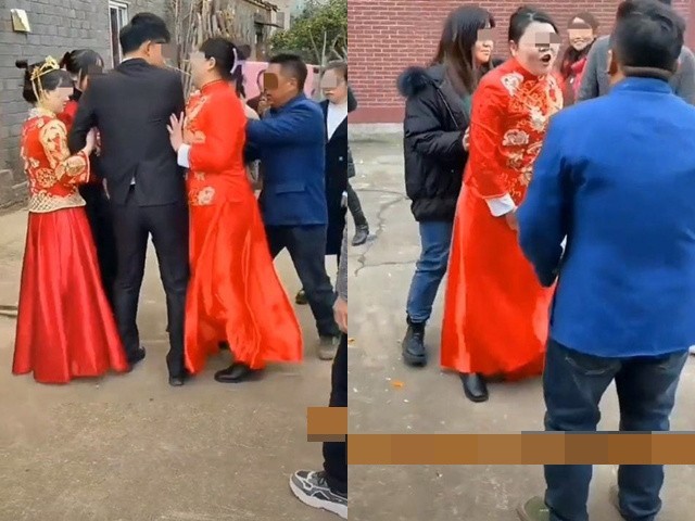 Bạn gái cũ biết tin đã rất tức giận và đến làm loạn tại lễ cưới. Ảnh: Sohu