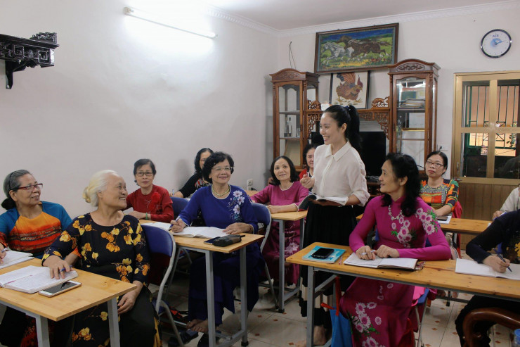 Sinh năm 1948, năm nay đã 76 tuổi, bà Nguyễn Thị Thắng (quận Ba Đình) cho hay quyết định theo học lớp học Tiếng Anh này để nâng cao kiến thức: “Tôi đi học để tuổi già bớt cô đơn, để não bộ thêm minh mẫn hơn! Cô giáo lại còn rất tốt bụng, tận tình chỉ dạy chúng tôi. Không những dạy học miễn phí mà còn có một trái tim ấm áp và tỏa nắng. Ngoài dạy học cô còn thường xuyên đi trao quà cho những người già có hoàn cảnh khó khăn, neo đơn, lang thang, đồng thời cô còn giúp đỡ các em nhỏ vùng sâu vùng xa, tiếp sức cho các em tới trường”.