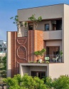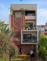 Ngôi nhà ở Vadodara nổi bật nhờ mặt tiền gạch được thiết kế với những họa tiết đầy sáng tạo. Thay vì sử dụng gạch theo cách thông thường, các kiến trúc sư đã khéo léo biến từng viên gạch thành một phần của tác phẩm nghệ thuật.