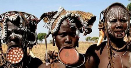 Với bộ tộc Mursi và Surma ở Ethiopia, người phụ nữ đẹp phải có một một cặp môi… kỳ dị. Cặp môi ấy phải có một cái lỗ to tướng, đủ nhét một cái đĩa. Người phụ nữ nào có lỗ thủng ở môi càng lớn, thì nhất định là càng hấp dẫn.