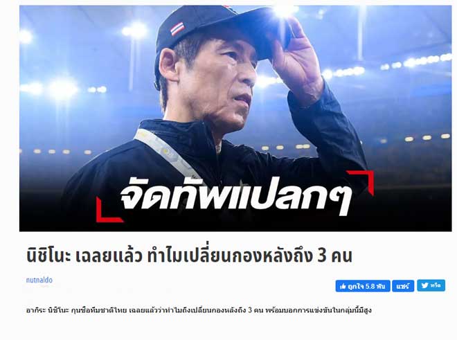 Mới đây SMM Sport lại tung tin cho biết HLV Nishino sẽ chuyển sang đội hình 4 hậu vệ. Bài viết thậm chí còn đi vào chi tiết như sau: “Một nguồn tin nội bộ đã tiết lộ rằng HLV Akira Nishino sẽ quay lại sử dụng Tanaboon Kesarat và Nitipong Selanon trong sơ đồ 4 hậu vệ cho trận đấu vào ngày 19/11 tới. Hai trung vệ là Manuel Bihr và Tanaboon Kesarat. Hậu vệ trái là Theerathon Bunmathan, cầu vừa thủ hết án treo giò. Hậu vệ phải sẽ là Nitipong Selanon”.