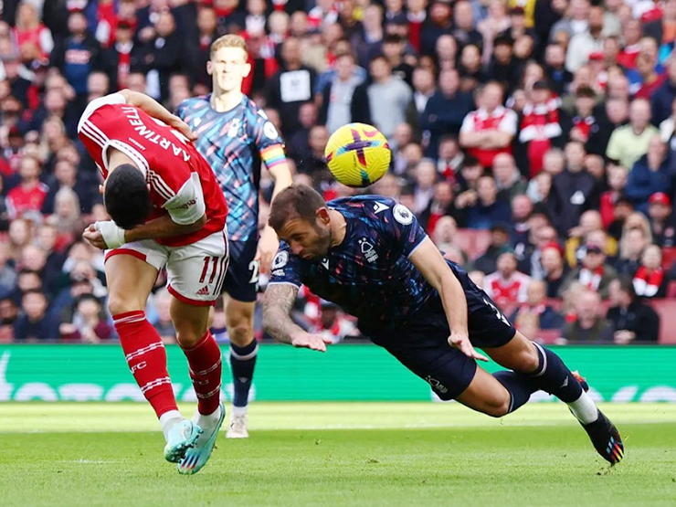 (Vòng 14 Ngoại hạng Anh) Arsenal giành chiến thắng tưng bừng trước đội bét bảng Nottingham Forest để đòi lại ngôi đầu bảng từ tay Man City.