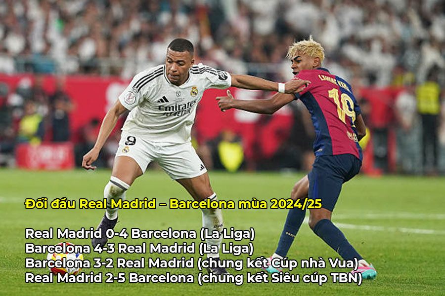 Kylian Mbappe là đối thủ đáng sợ cho Barcelona, nhưng Barca đã thắng Real Madrid cả 4 trận mùa trước, và Lamine Yamal đang trong chuỗi 6 trận thắng liên tiếp trước cá nhân Mbappe. Dù vậy tối Chủ nhật này, Mbappe và Real Madrid đang có thanh thế để chấm dứt chuỗi trận thất bại của họ.