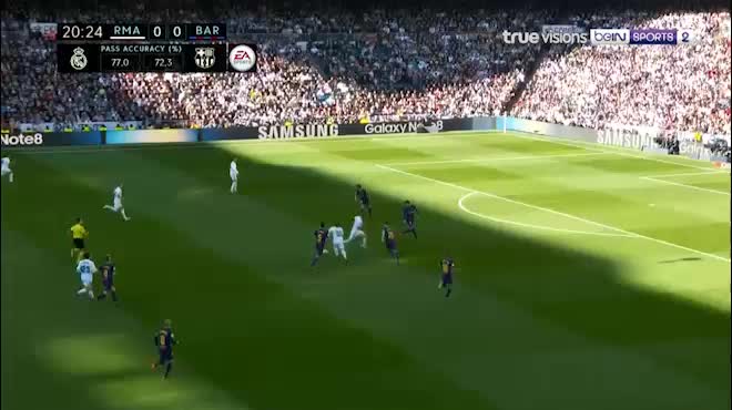 Phút 21, Ronaldo có bóng ở góc hẹp bên trái, thay vì chuyền vào trong cho nhiều đồng đội chờ sẵn thì anh lại đảo sang chân phải và sút, bóng bật vào Pique bay ra ngoài. 10 phút sau, anh lại một lần nữa dứt điểm khi góc đã rất hẹp nên đã bị Ter Stegen dùng chân cản phá.