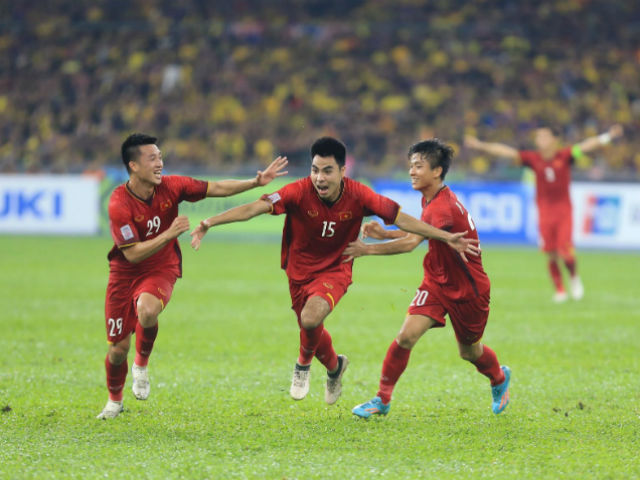 Đội tuyển Việt Nam ăn mừng giàu cảm xúc khi ghi liên tiếp 2 bàn ở Bukit Jalil.