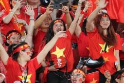 Các cầu thủ ĐT Việt Nam lập tức chạy ra góc sân của các khán giả và ăn mừng vô cùng cảm xúc. HLV Kim Sang Sik cũng không thể giấu nổi cảm xúc đầy bùng nổ.