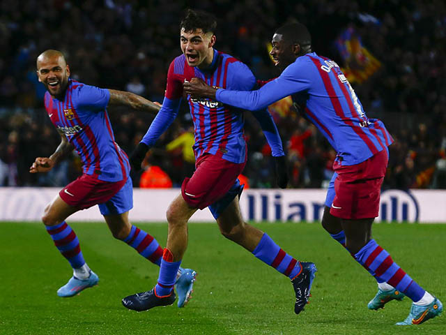 Barcelona: Ter Stegen, Dani Alves, Pique, Jordi Alba, Araujo, Sergio Busquets, F. de Jong, Gavi, Torres, Depay, Aubameyang