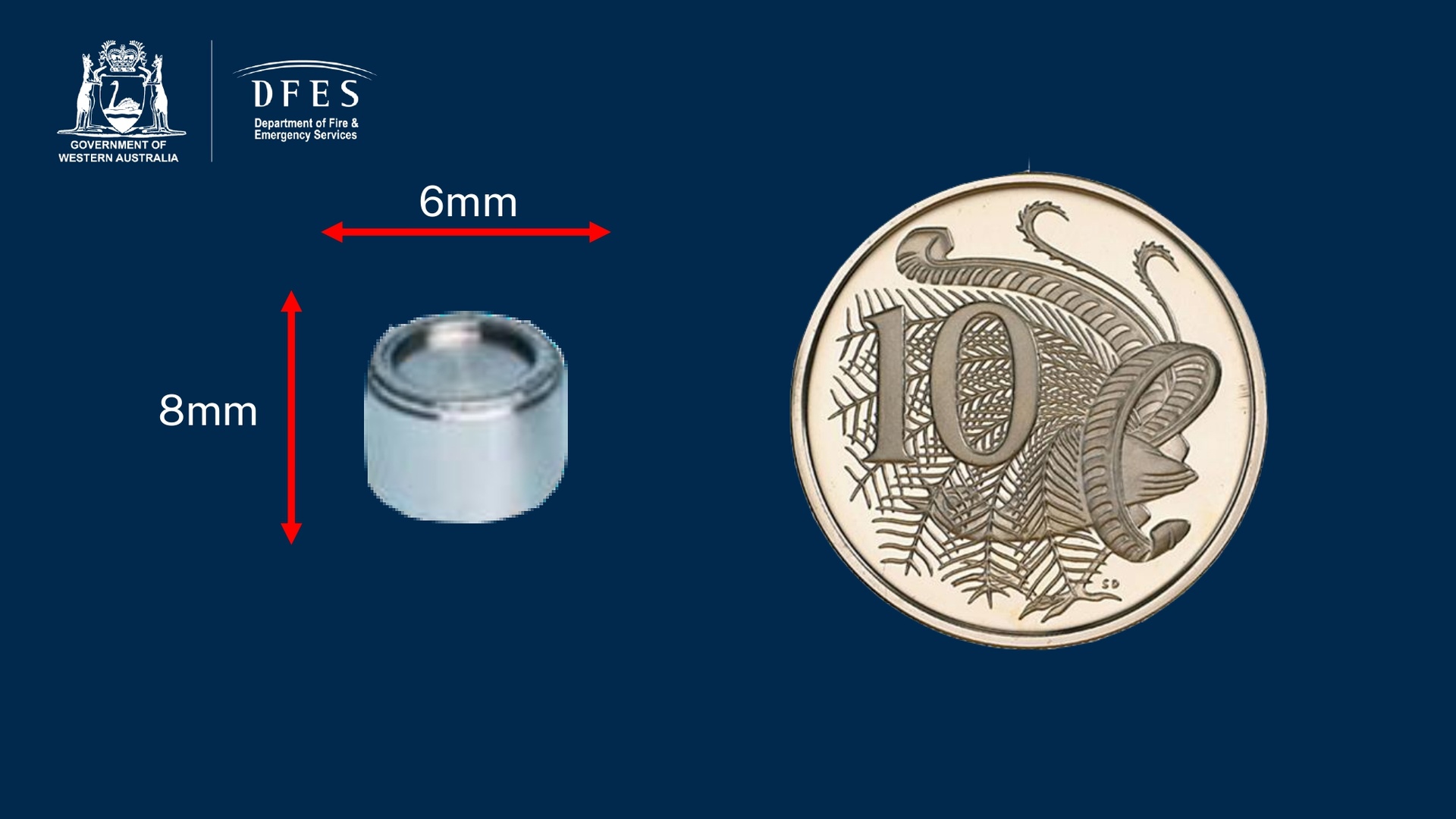 Viên nang phóng xạ bị mất tích có kích thước 6mm x 8mm. (Ảnh: Sở Cứu hỏa và dịch vụ khẩn cấp bang Tây Úc)