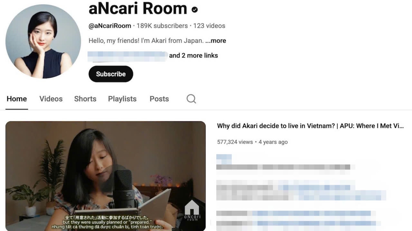 Akari Nakatani với kênh aNcari Room, là YouTuber người Nhật đang sinh sống tại TP.HCM. Cô rất được mọi người quan tâm nhờ cách kể chuyện nhẹ nhàng, sâu lắng và giàu cảm xúc. Cô làm vlog về cuộc sống hàng ngày, du lịch, ẩm thực và trải nghiệm học tiếng Việt, tất cả được kể qua lăng kính của một người Nhật đang cố gắng hòa nhập vào Việt Nam.