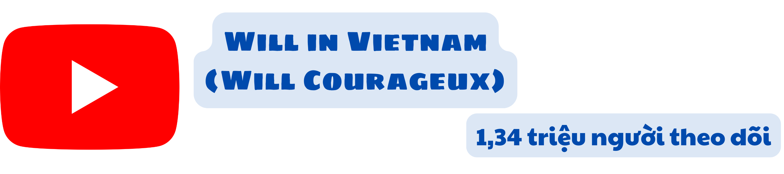 Will Courageux hay “Will in Vietnam” (còn được biết là “A Frenchy in Vietnam”), là YouTuber người Pháp chuyên làm nội dung trải nghiệm văn hóa và ẩm thực Việt Nam. Kênh của anh thu hút khán giả qua các video thử món ăn truyền thống, thăm các quán nhỏ, trò chuyện với chủ quán hay người dân địa phương và biểu cảm rất thật khi nếm những món lạ, đặc trưng.