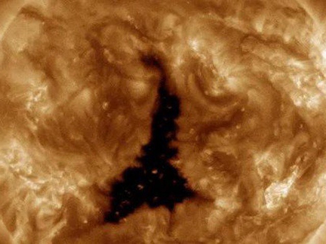 Một lỗ hổng lớn hiếm thấy đã xuất hiện trên ngôi sao mẹ của Trái Đất, tuôn ra những dòng hạt năng lượng cao.