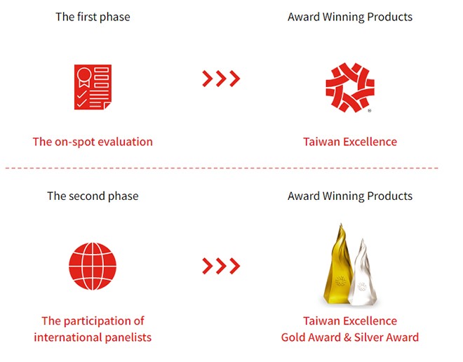 Quy trình lựa chọn các sản phẩm đoạt Giải thưởng Taiwan Excellence bao gồm hai giai đoạn. Giai đoạn đầu tiên là đánh giá hiện trường và lựa chọn các sản phẩm đoạt Giải thưởng Taiwan Excellence, đồng thời lập danh sách đề cử cho giải “Taiwan Excellence Gold and Silver Quality Award” bởi hội đồng giám khảo. Giai đoạn thứ hai sẽ có sự tham gia của các giám khảo quốc tế để cùng chọn ra các sản phẩm đoạt giải “Taiwan Excellence Gold Award” và “Taiwan Excellence Silver Award” - những giải thưởng danh giá nhất dành cho các sản phẩm xuất sắc đại diện cho Đài Loan.