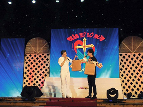 Anh cũng miêu tả đây là buổi đấu giá từ thiện rất kịch tính và nhờ đó mà năm nay các gia đình nghèo đã có tiền để ăn tết. “Ông hoàng nhạc Việt” cho biết ở Việt Nam chỉ có hai chiếc túi và anh đã tặng cho nhà thờ để tham gia đấu giá từ thiện.