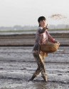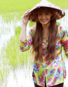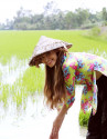 Cách đây vài ngày, hot girl Bà Tưng (tên thật Lê Thị Huyền Anh) gây chú ý mạng xã hội khi đăng tải clip đi dặm lúa kèm chú thích: "Thích đăng cam thường ghê". Trong clip, người đẹp xứ Nghệ mặc quần short, áo thun trễ cổ "rộng mênh mông". Động tác cúi xuống dặm lúa khiến Huyền Anh rơi vào cảnh hớ hênh, lộ vòng một.