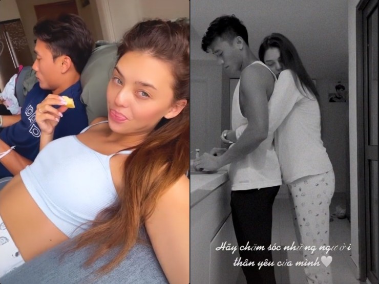 Được biết, sắp đến ngày con gái sinh con đầu lòng nên mẹ cùng em gái của cô đã bay từ Ukraina sang Việt Nam để chăm sóc. Trước thời gian thành bố mẹ bỉm sữa, vợ chồng nam thủ môn tranh thủ đưa mẹ đi du lịch. Bà và con rể có mối quan hệ mẹ con thân thiết. Thủ thành 25 tuổi cũng cho biết anh thêm yên tâm vì vợ có người bầu bạn mỗi khi anh tập luyện và thi đấu xa nhà. Vợ chồng anh đã đưa gia đình đi ăn uống và tham quan một số nơi.
