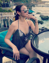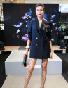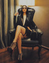 Huyền Baby sang chảnh ngút ngàn cùng mốt giấu quần, ngồi trên ghế da quyền quý.