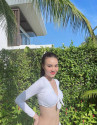 Mới đây, diễn viên Khả Như gây chú ý khi chia sẻ bức ảnh trong trang phục gợi cảm lên trang cá nhân. Trong hình, cô diện chiếc áo croptop đan chéo chỉ che vòng một hờ hững. Tuy nhiên, thiết kế chất liệu mỏng manh khiến nữ diễn viên lộ rõ hai miếng dán ngực kém duyên trước ống kính. Không những thế, một người em thân thiết của Khả Như - Duy Khánh nhanh chóng chỉ ra điểm lạ trên cơ thể cô. Cụ thể, eo Khả Như lộ rõ vết như rạn da sau sinh. Khả Như ngay lập tức giải thích đây là những vết hằn của cạp quần quá chật.