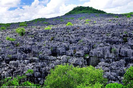 Mê cung đá vôi Tsingy, thuộc Công viên Quốc gia Ankarana, phía Bắc Madagascar. Theo tiếng Malagasy, Tsingy có nghĩa là “Nơi không thể đi chân đất”. Trong suốt hàng triệu năm, những lớp vỏ sò và san hô bồi đắp đáy biển và qua thời gian đã kết thành một khối đá vôi khổng lồ. Sau những chuyển động của trái đất đã đẩy khối đá vôi này lên khỏi mặt biển. Dưới tác động của thời tiết, các khe vách hình thành và tạo nên hình dạng của Tsingy ngày nay.