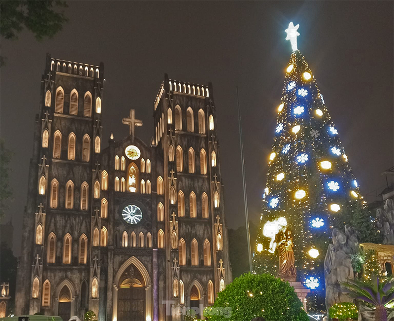 Đến hẹn lại lên, Nhà thờ lớn Hà Nội luôn là một trong những điểm check-in Noel hàng đầu cho du khách. Năm nay, Nhà thờ được trang hoàng lộng lẫy với cây thông Noel khổng lồ và hoạt cảnh tái hiện sự ra đời của Chúa Giêsu, tạo nên khung cảnh huyền ảo.