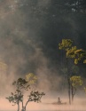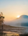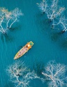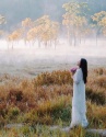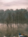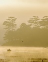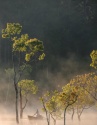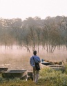 Giữa màn sương giăng buổi sớm, Suối Tía hiện lên như một bức tranh ma mị, nơi những hàng cây soi bóng xuống mặt nước tĩnh lặng, những ngư phủ trầm ngâm cùng chiếc thuyền nhỏ, tạo nên khung cảnh tựa phim kiếm hiệp. Ảnh Thu Trang