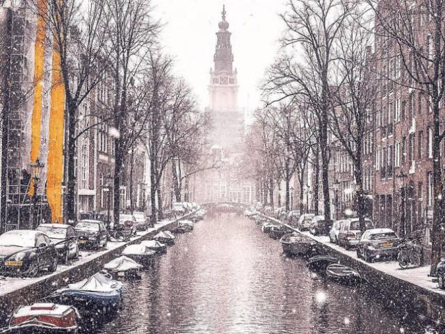 Nhiếp ảnh gia Gabriel đã ghi lại những hình ảnh tuyệt đẹp của thành phố Amsterdam, Hà Lan dưới mưa tuyết.