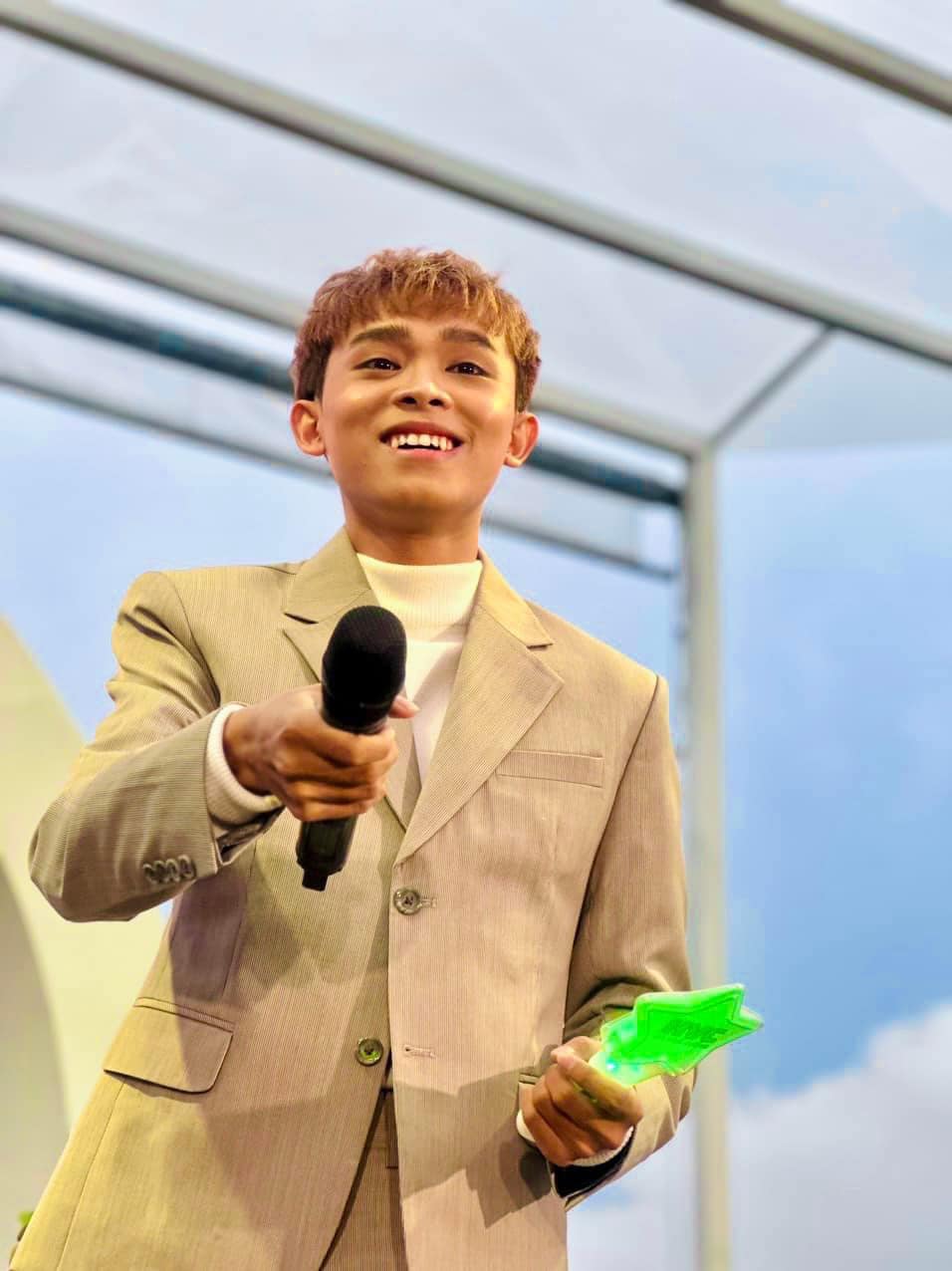 Hồ Văn Cường bên bó hoa kèm 120 triệu cùng nhiều phần quà của fan trong show diễn 28/5