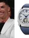 Ronaldo thường xuyên xuất hiện với chiếc đồng hồ Hublot MP-09 Tourbillon Bi Axis 5 Days Power Reserve phiên bản giới hạn. Đây được đánh giá là một trong những cỗ máy siêu phức tạp của nhà Hublot. MP-09 Tourbillon Bi-Axis được đính kim cương cắt baguette hoàn toàn, nạm kín trên vỏ và khung viền bezel, có khả năng dự trữ năng lượng trong năm ngày. Giá bán của Hublot MP-09 Tourbillon Bi-Axis lên tới hơn 17 tỷ đồng.