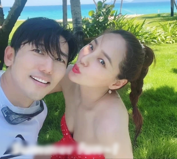 Eugene khoe vẻ trẻ trung bên chồng. Cô sở hữu gương mặt nhỏ nhắn, đường nét sắc sảo, cuốn hút.