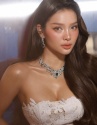 Trong loạt hình mới, Phương Trinh Jolie chọn thiết kế váy cúp ngực khoét sâu, tôn trọn bờ vai trần gợi cảm cùng đôi gò bồng đào nóng bỏng.