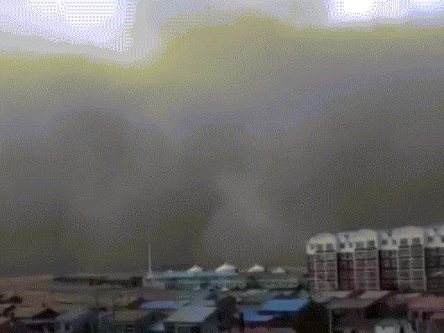 Cơn bão cát cực mạnh bao trùm toàn bộ thành phố Mãn Châu Lý ở khu tự trị Nội Mông, Trung Quốc.