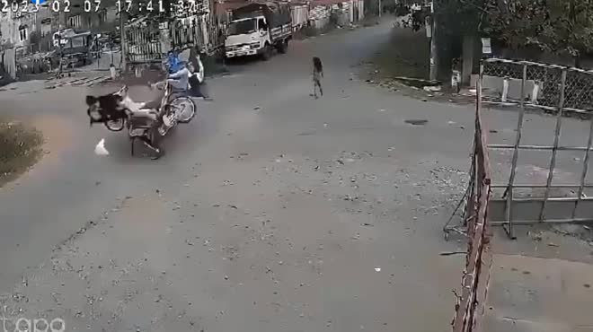 Clip: Bị tông bay “mất” xe máy, 2 người văng khỏi xe và cái kết ngỡ ngàng