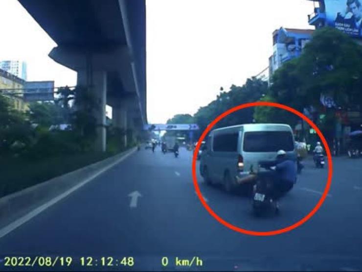 Sau khi tạt đầu, hất ngã cô gái đi xe máy chở mẹ phía sau, chiếc ô tô vẫn chạy mất hút, bỏ mặc 2 nạn nhân bị thương.