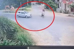 Clip: Vội vài giây, xe máy bị ô tô tông văng vào nhà dân, 2 người gặp nạn