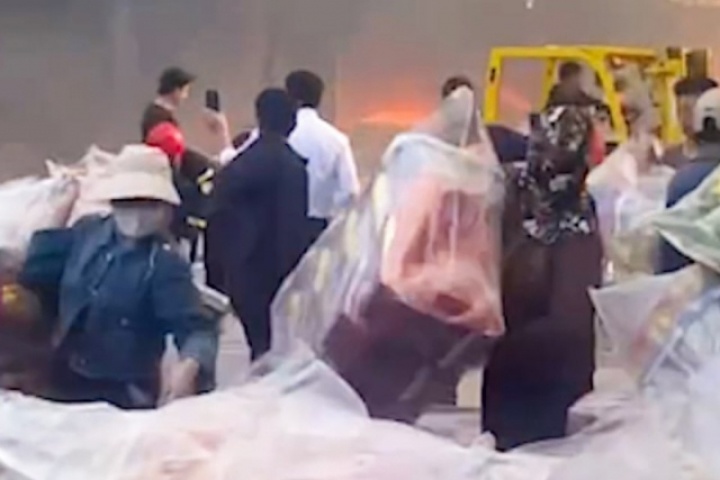 Giữa khói lửa ngùn ngụt, hàng chục người dân ở xã Thuận Thành đã lao vào khu vực cháy để cứu các kiện hàng mã chuẩn bị bán dịp Tết.