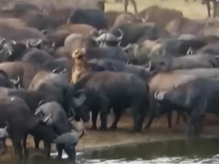 Truy sát trâu non, sư tử dính đòn đau từ trâu mẹ