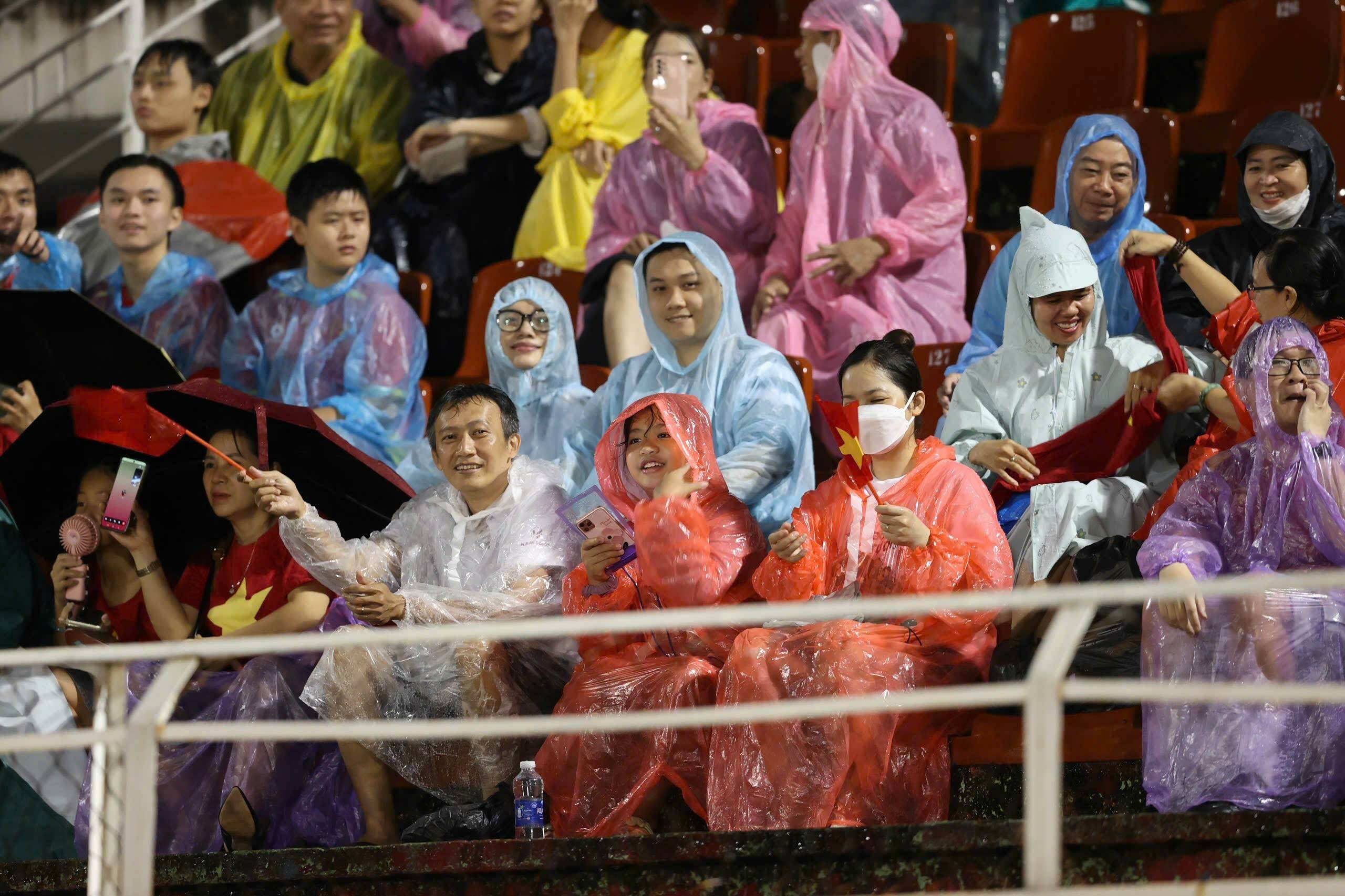 Dù thời tiết không thuận lợi, các cổ động viên Việt Nam vẫn thể hiện tinh thần cuồng nhiệt khi có mặt từ rất sớm trên khán đài. Đặc biệt, nhiều người lớn tuổi không ngại mưa gió, kiên trì đến sân để tiếp sức cho thầy trò huấn luyện viên Kim Sang Sik. Hình ảnh những ánh mắt háo hức, nụ cười rạng rỡ của người hâm mộ, thậm chí có người không mặc áo mưa, tranh thủ ăn vội để giữ sức cổ vũ, đã tạo nên bầu không khí đầy cảm xúc và hy vọng vào chiến thắng cho “Các chiến binh sao vàng”.