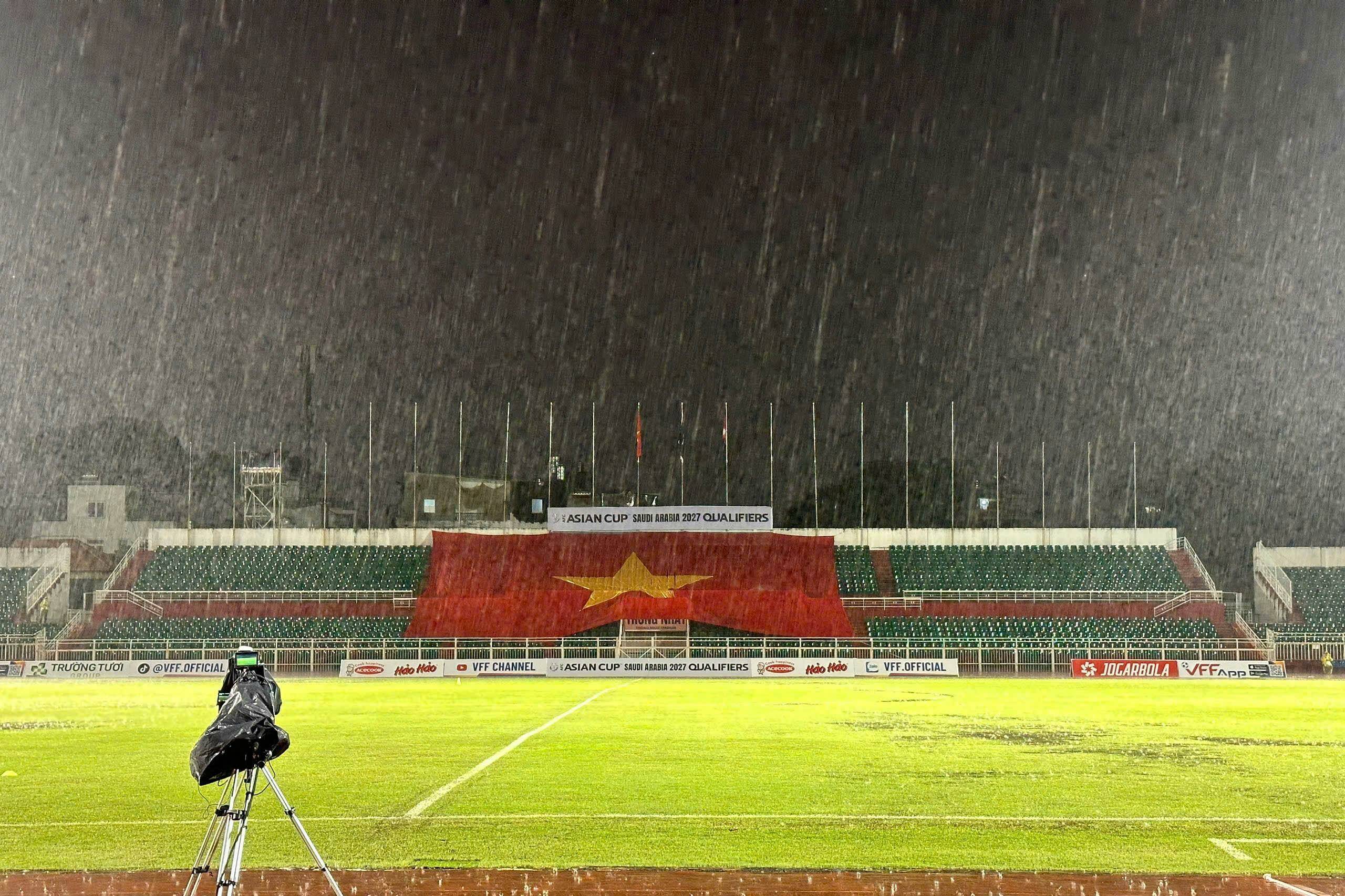 Trận đấu giữa đội tuyển Việt Nam và Nepal trên sân Thống Nhất đã gặp phải thử thách lớn khi cơn mưa nặng hạt bất ngờ đổ xuống ngay trước giờ bóng lăn. Mặt sân nhanh chóng ngập nước, khiến chất lượng chuyên môn của trận đấu đứng trước nguy cơ bị ảnh hưởng nghiêm trọng. Để đảm bảo an toàn và điều kiện thi đấu tốt nhất, ban tổ chức đã quyết định lùi thời gian bắt đầu trận đấu thêm 30 phút và bắt đầu vào lúc 20h.