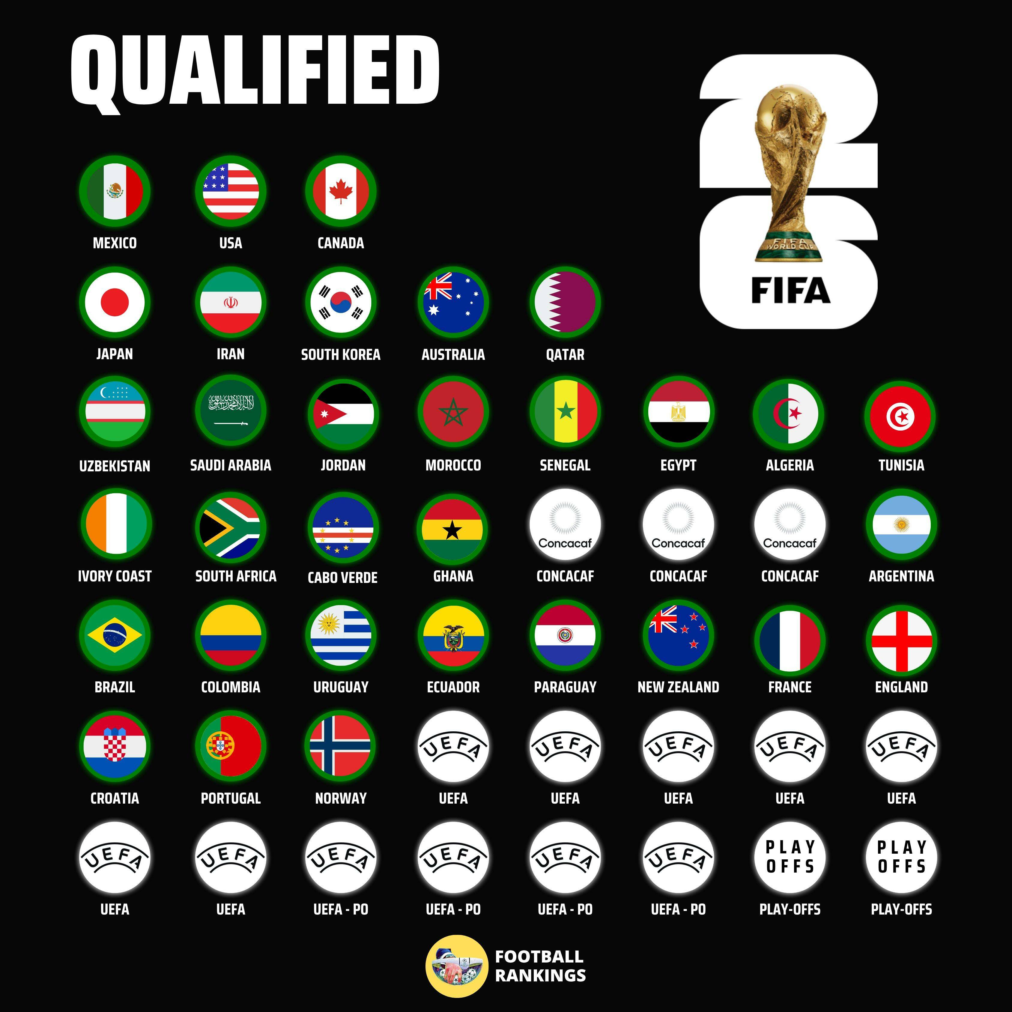 Kỳ World Cup lớn nhất lịch sử đang đến gần và đến lúc này, 32 đội tuyển đã chắc suất góp mặt tại vòng chung kết. Danh sách được chia theo từng châu lục như sau: