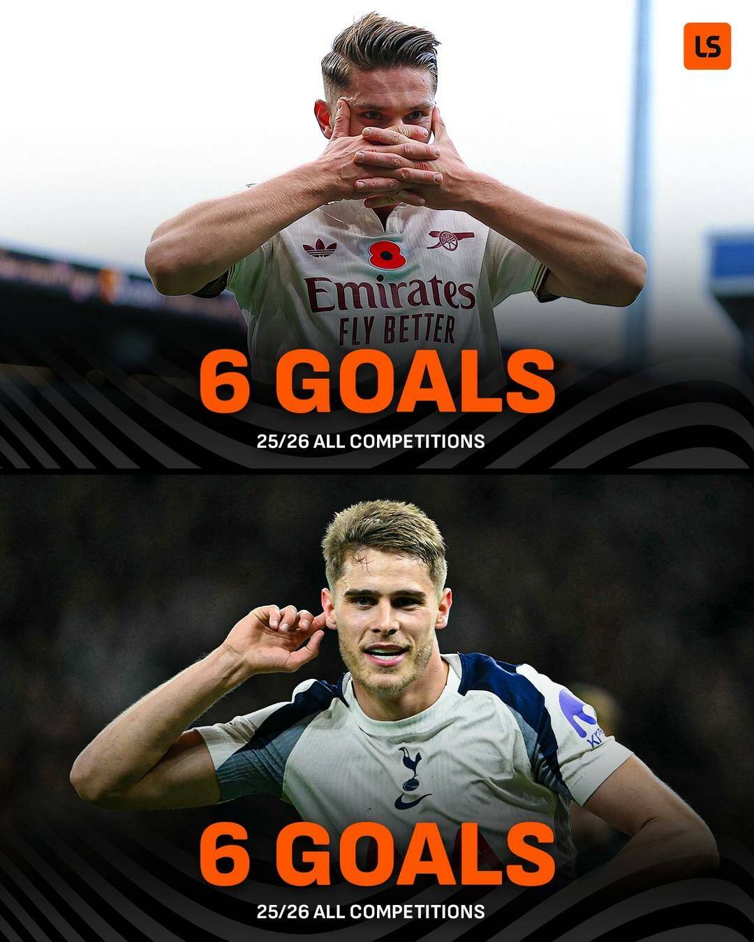 ⚽️ Số bàn thắng ghi được ở mùa giải 2025/26, tính đến thời điểm hiện tại: