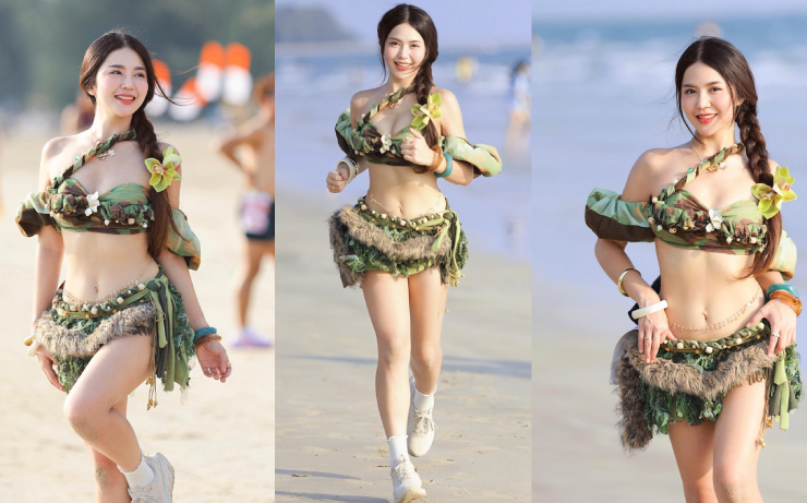 Giữa không khí rực rỡ của Bikini Run Chanthaburi 2026, một nữ vận động viên với tạo hình “công chúa rừng xanh” đã chiếm trọn spotlight. Hình ảnh cô xuất hiện trên đường chạy ven biển nhanh chóng lan tỏa mạnh mẽ trên mạng xã hội, biến cự ly 5km thành một sàn diễn thời trang sống động.
