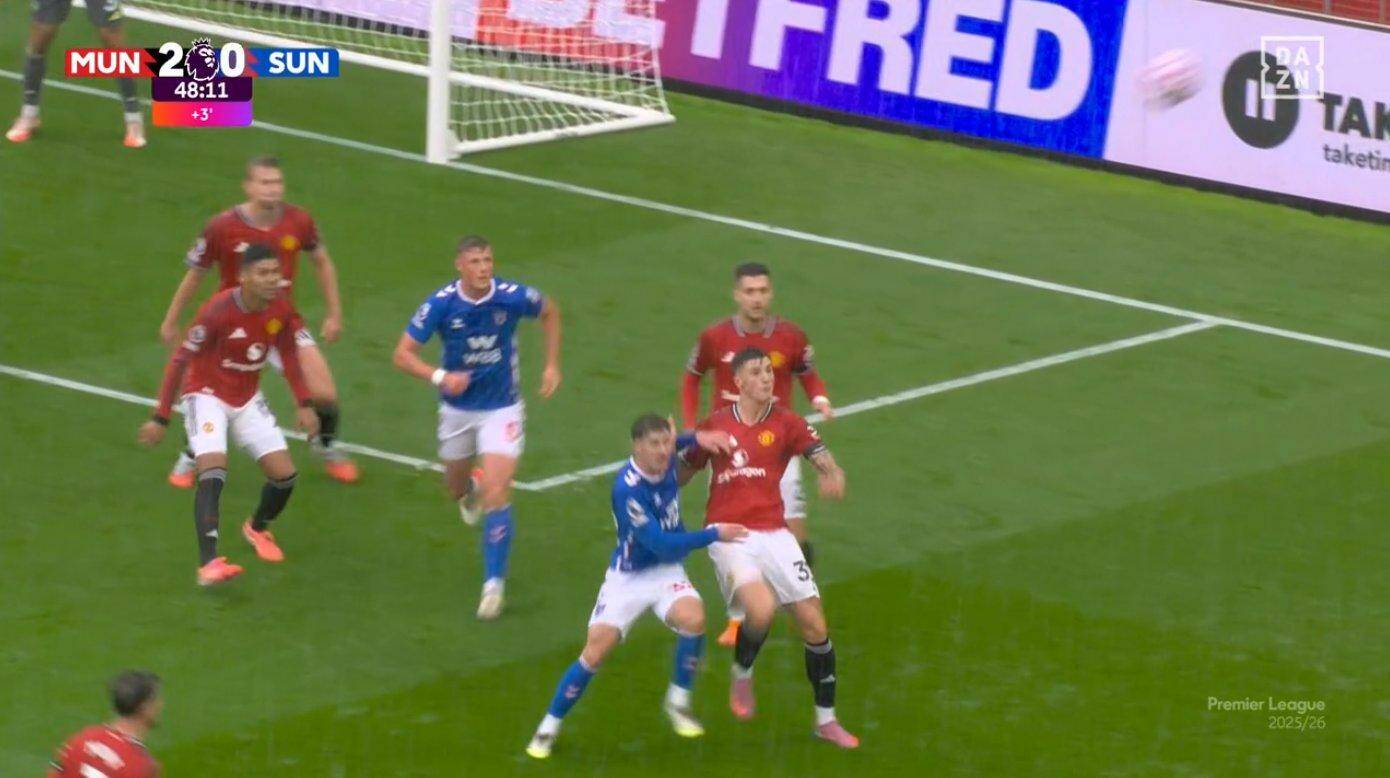 Bước sang hiệp 2, MU lựa chọn cách chơi an toàn hơn: lùi đội hình thấp, ưu tiên phòng ngự chắc. Hàng thủ với sự tập trung của Yoro, Shaw, De Ligt liên tục bẻ gãy các pha phối hợp của Sunderland.