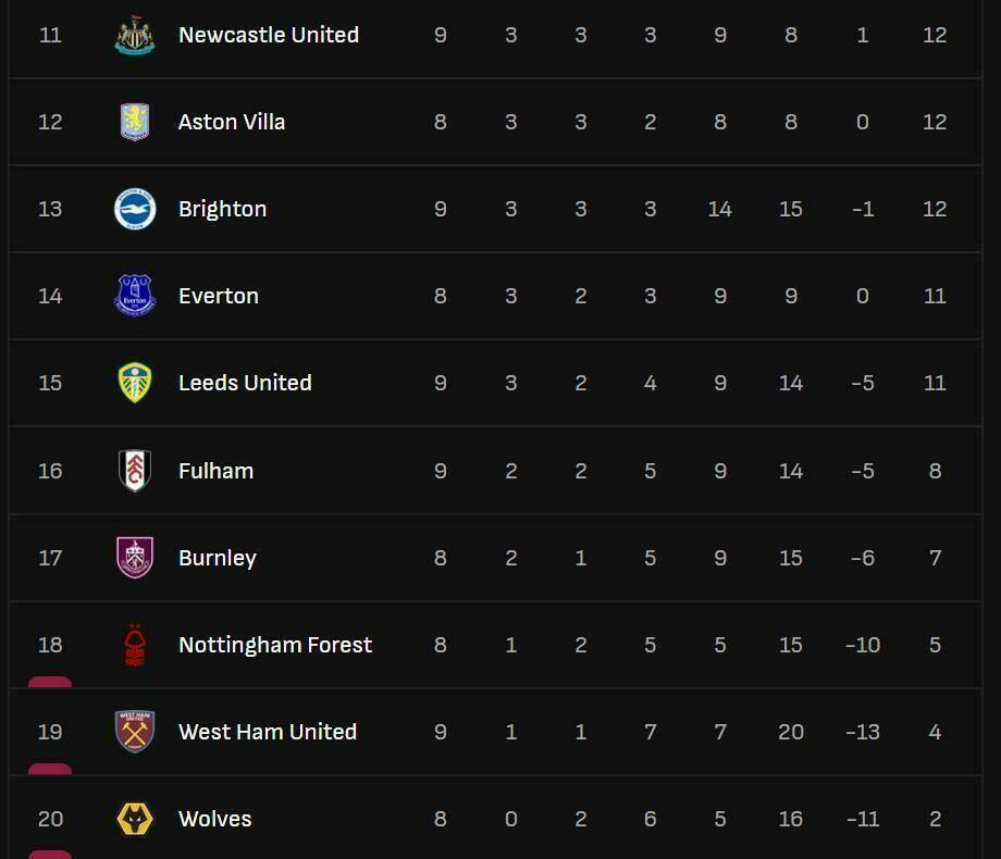 Leeds United vượt qua West Ham 2-1, còn Newcastle đánh bại Fulham 2-1, giúp cả hai chen chân vào nửa trên bảng xếp hạng. Những đội tầm trung đang tận dụng triệt để việc các ông lớn sa sút, khiến cuộc đua suất châu Âu trở nên khốc liệt hơn bao giờ hết.
