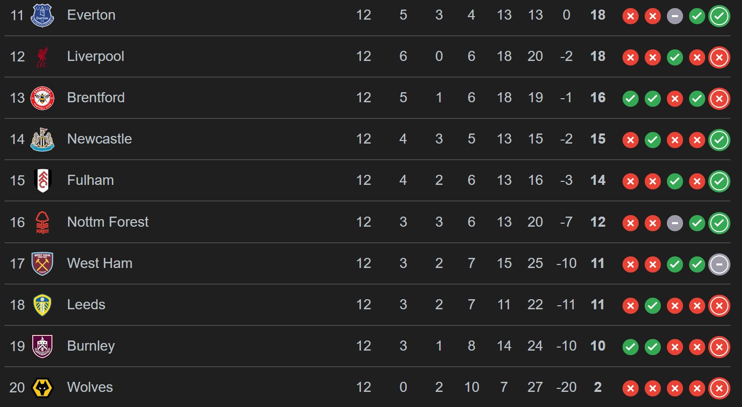 Ngược lại, nhóm cuối bảng lại đang chìm trong khủng hoảng: Wolves chỉ có 2 điểm, Burnley 10, Leeds 11 — tất cả đều vật lộn để bấu víu hy vọng sống sót. Sự phân hóa mạnh giữa nhóm đầu, nhóm đua top 4 và nhóm trụ hạng khiến Premier League trở nên “nhiễu động”, và đó là điều khiến việc đánh rơi điểm như MU vừa trải qua trở nên nguy hiểm hơn: mỗi vòng đấu không chỉ thay đổi vị trí, mà có thể xoay chuyển cả số phận một mùa giải.