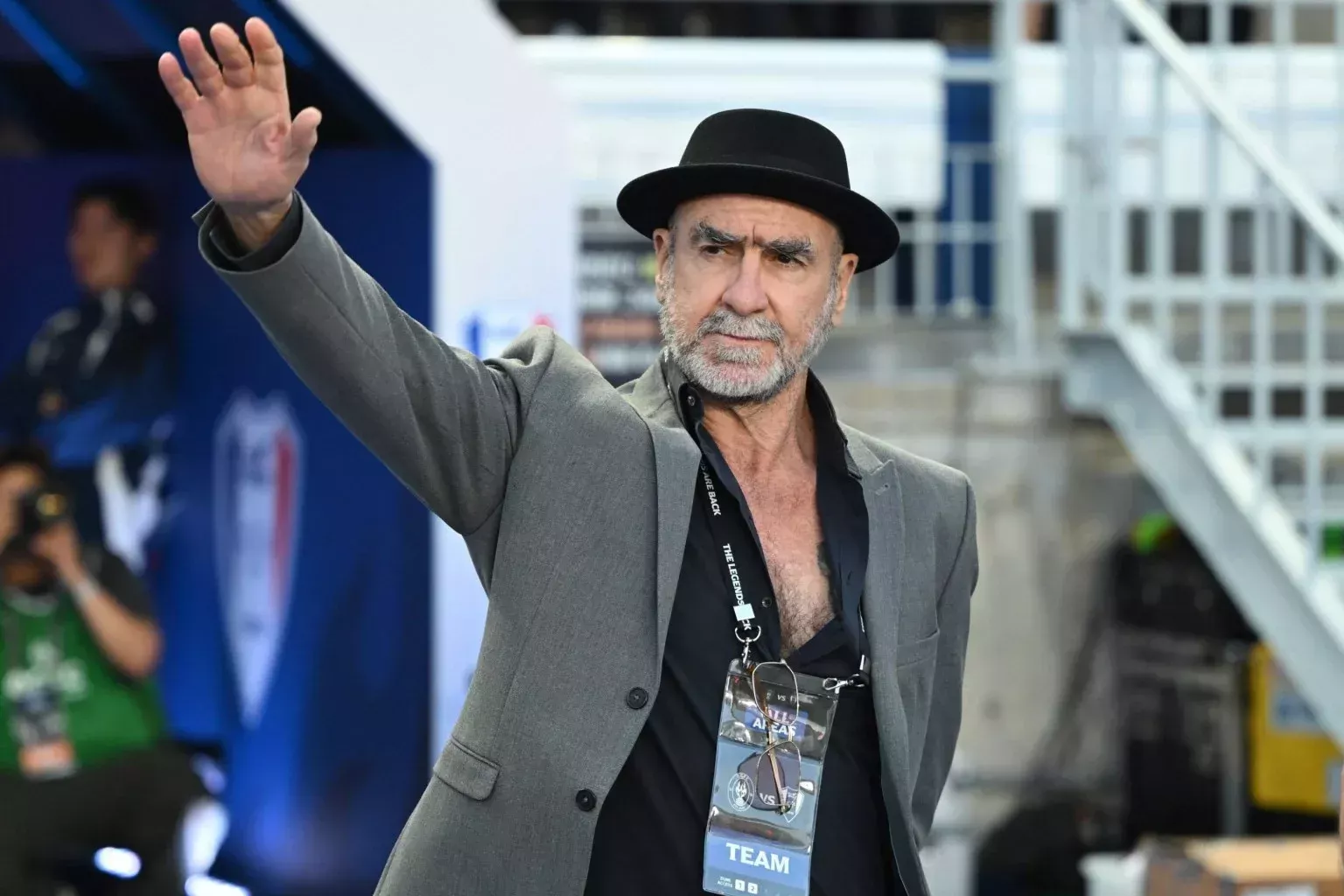 Sir Alex Ferguson không thể sang châu Á, Eric Cantona được trao vai trò huấn luyện viên trưởng, bên cạnh trợ lý quen thuộc Mike Phelan. Ngay trước giờ bóng lăn, Cantona tạo nên khoảnh khắc đắt giá nhất đêm diễn. Ông diện vest lịch lãm, đội mũ fedora, dẫn đầu dàn cựu binh bước ra từ đường hầm trong màn khói lạnh mờ ảo, gợi cảm giác như một cảnh phim được dàn dựng kỹ lưỡng.