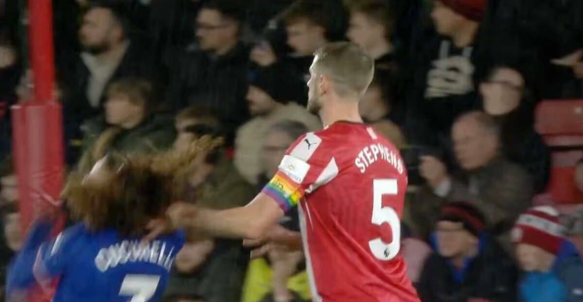 Năm 2024, Jack Stephens cũng nhận kết cục tương tự trong trận Southampton thua Chelsea 1-5 trên sân St Mary’s. Đội trưởng chủ nhà bất ngờ giật tóc Marc Cucurella khiến hậu vệ Chelsea ngã xuống sân khi đang chuẩn bị đón phạt góc. Bóng chưa vào cuộc, Stephens không có lý do để biện minh cho pha tác động. Sau khi xem lại tình huống, trọng tài rút thẻ đỏ trực tiếp và Stephens bị treo giò ba trận.